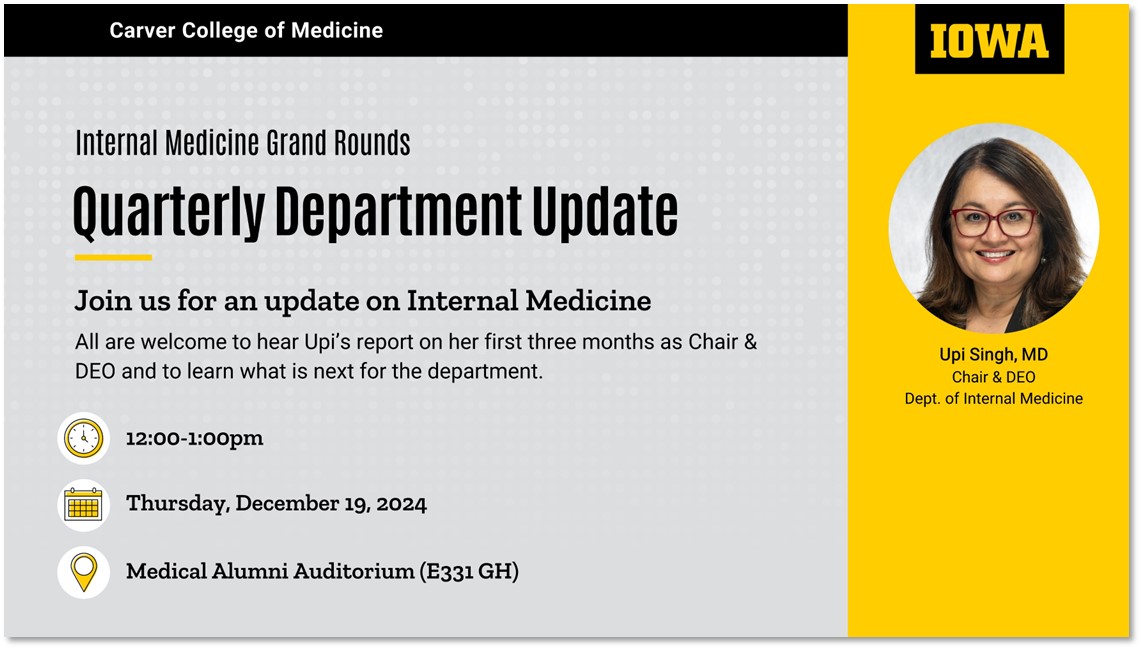 There will be plenty of time for me to detail our collective successes and opportunities at next month’s department update on December 19 at noon, held in place of our regular Grand Rounds. It will be a nice way to close out the year in a sort of mini-State of the Department address, but I plan to make these sessions a more regular event. I hope you will attend, and please feel free to bring questions. Until then, my sincere thanks to you for all that you give every day to our shared passion, our wonderful community, and to your own well-being and growth. Happy Thanksgiving!